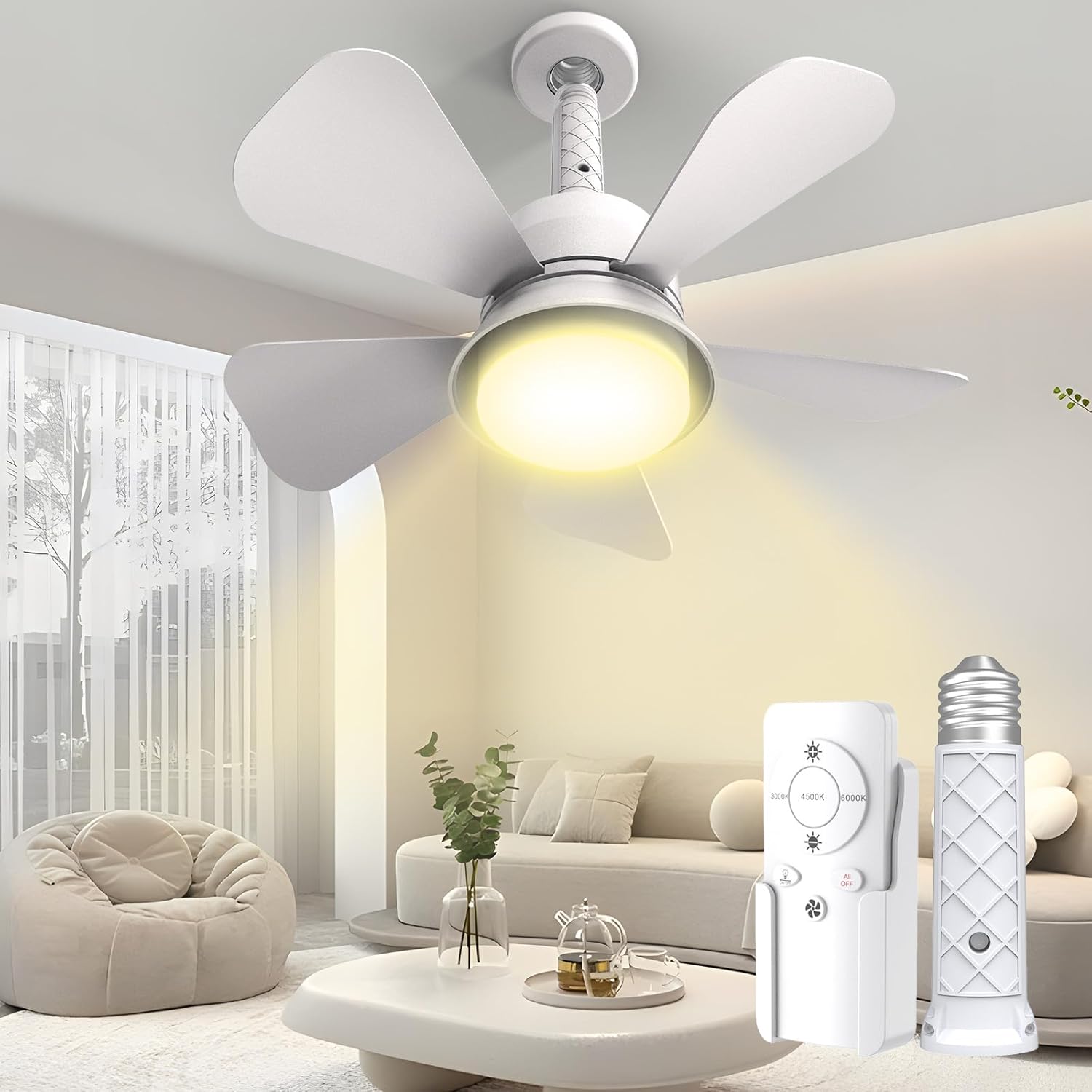 | Special Features | 3 Lights Color Temperature, 5 Brightness Dimmable, 3 Fan Speeds, Ultra Quiet, Screw into E26/E27 Light Socket Base, Remote Control, 2 in 1 Ceiling Fan Light, Wireless, Socket ceiling fan for bedroom, modern ceiling fan with light and remote, Lightweight, Portable, Quiet Operation |