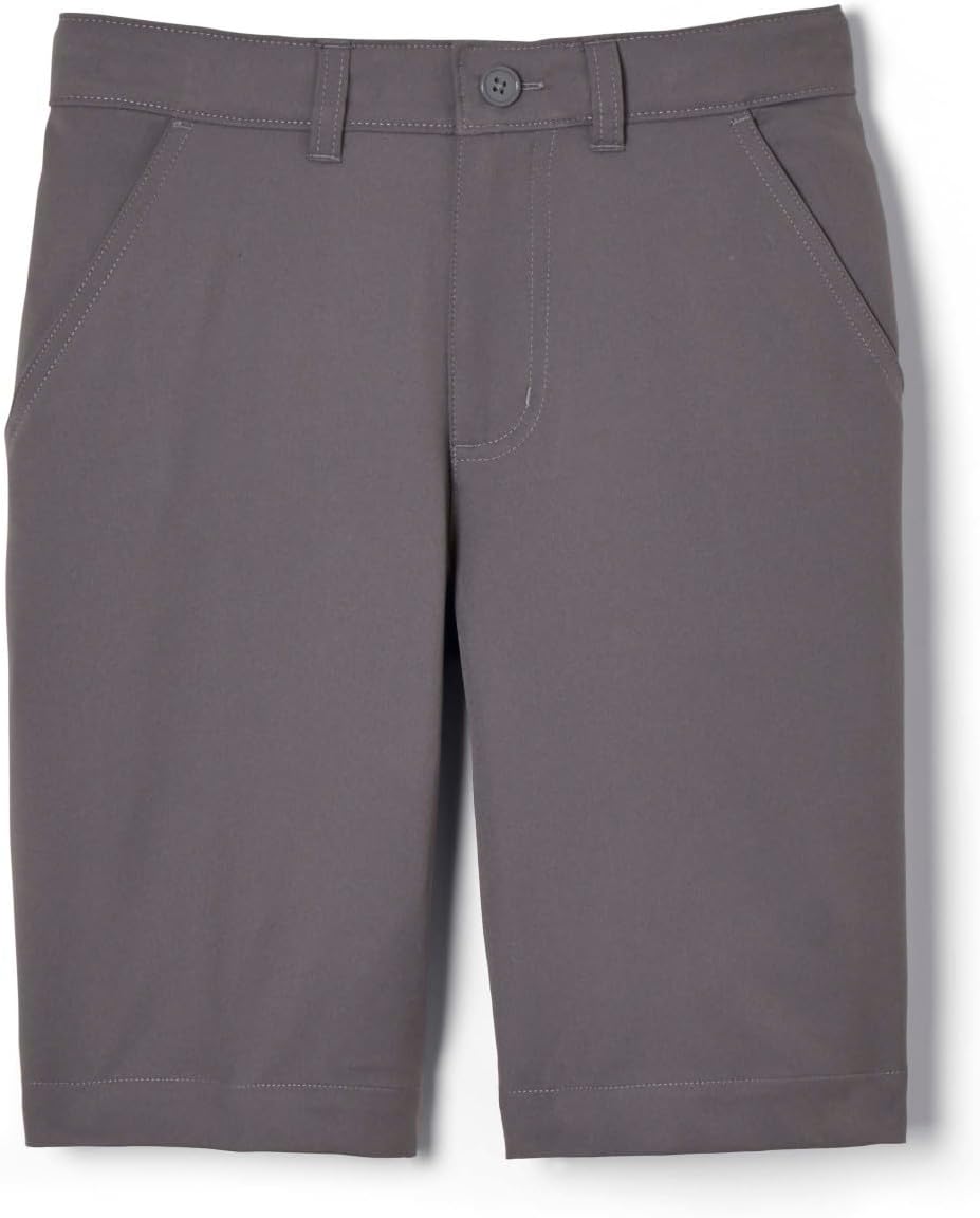 French Toast Boys Flat Front Stretch Performance Short is made for kids who want to stay comfortable and parents who want them to look pulled together. With the classic look of khaki shorts and the feel of activewear, these uniform shorts are ready for school, playground time, family outings, picture day, golf, travel and more. The soft polyester microfiber fabric has stretch for easy movement and moisture-wicking performance to help keep boys cool and dry through busy days. A flat-front silhouette gives these shorts a clean, polished look, while the adjustable comfort waistband helps provide a better fit. Finished with a hook-and-bar closure, zipper, decorative chalk button, front slash pockets and double-welt back pockets, these boys shorts balance smart style and all-day wearability. Easy to wash and easy to wear, they are a versatile school short, khaki short, uniform short and dress-casual option for active boys.