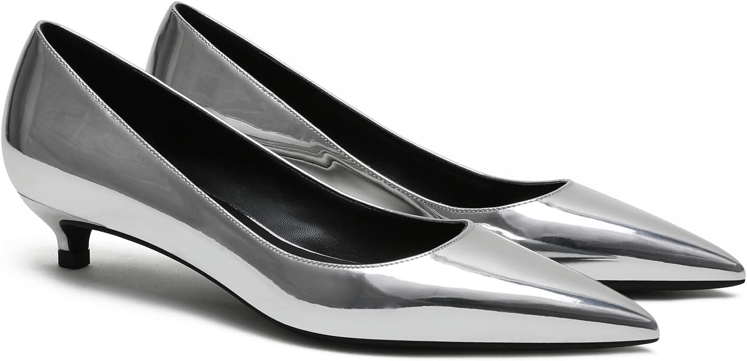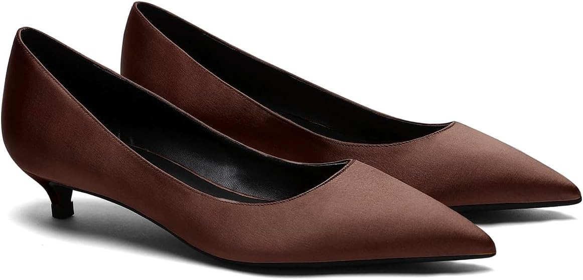 ✨WELCOME TO MOOMMO STUDIO!✨ 💕Shoes Features: 【Heel】1 Inch Low Kitten Heel Work Pumps. 【Material】Satin upper sandals for all occasion. 【Toe】Closed Pointed Toe dress pumps . 【Wear method】Slip on dress shoes. 【Occasion】Classic style for wedding, party,evening,office. 【Size】True to size.Choose your usual size. 💕MOOMMO Advantages 【One】Every 1 pair of shoes is handmade. 【Ten】At least 10 test models for selecting the most comfortable type. 【Fifteen】The development of each shoe last are more than 15 days. 【Twenty】Over 20 years of shoe-making experience in our own factory. 【Three hundred and sixty-five】Our shoes will give you 365 days of peace of mind.