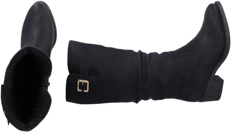 Freezing? No way These jet black Rieker high shaft boots are perfect for every day. The zip ensures comfortable putting on and taking off. The gathered look rounds off the look of the shoe harmoniously. The shoe has a non-slip sole with block heel that impresses with good grip for a secure appearance. In addition, the insole is extra soft. Soft warm lining makes these high shaft boots the ideal companion in any weather. What more could you want?