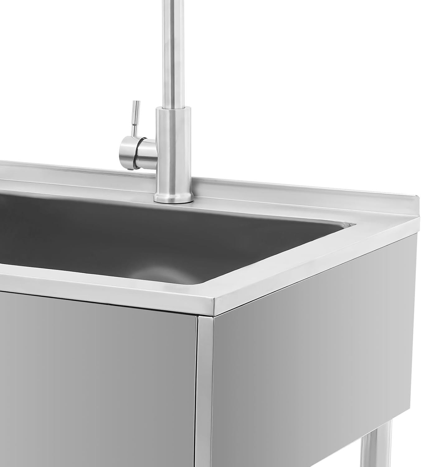 Single Bowl Laundry Tub, Freestanding Utility Sink with Stainless Steel Faucet & Drain Kit, Hot/Cold Water Plumbing for Laundry Room, Garage, Bathroom